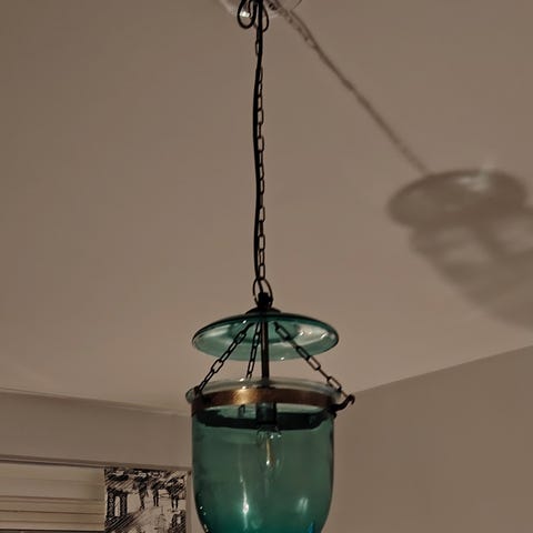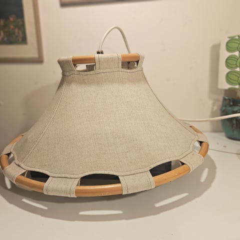Taklampa från Atelje lyktan. Design Mia Cullin 2004. Tillverkad av röd transparent akrylplast.
