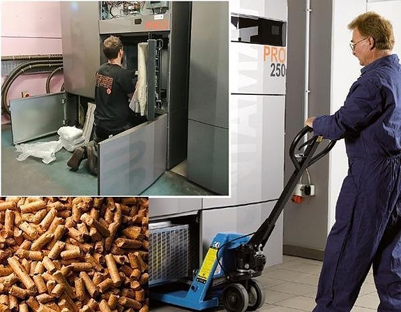 Pannor och brännare för pellets, flis, spannmål, briketter, spån eller ved.