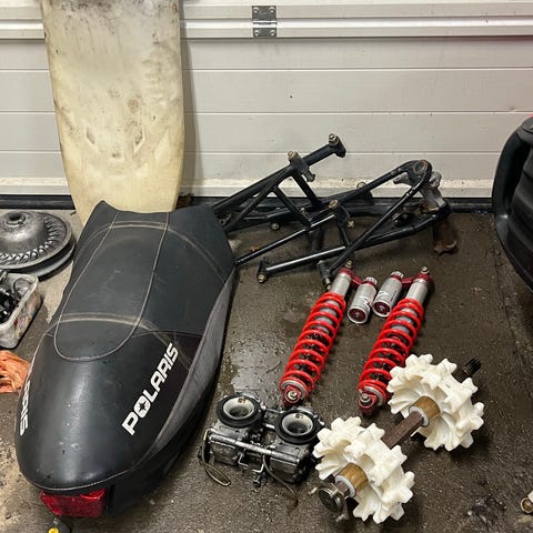 komplett fungerande maskin i delar styre,höjare gasblock och skidor kommer jag att behålla