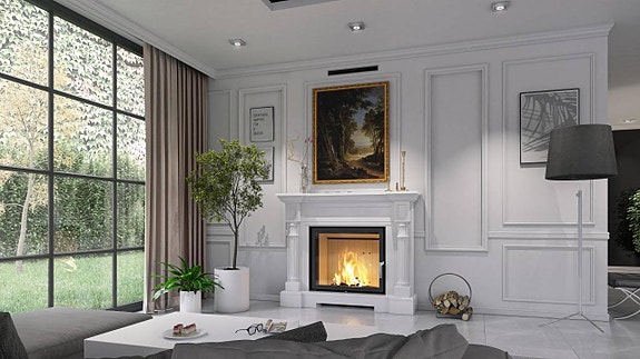 Lyxig insatskamin , välj design i samråd med oss, och få en perfekt eldstad i ert hem.