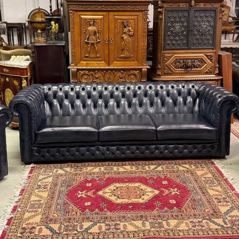 Möblerna tillverkades på beställning. Det finns också möjlighet att beställa andra Chesterfield möbler och välja formen samt färg enligt egna önskemål. Hör av dig om du är intresserad.