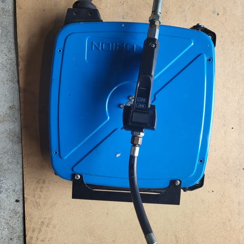 Kapslade vindor, rostfria, med livsmedelsslang utrustade med returbroms för kontrollerad inrullning. Max temperatur 70 °C. Levereras med svängbart väggfäste.