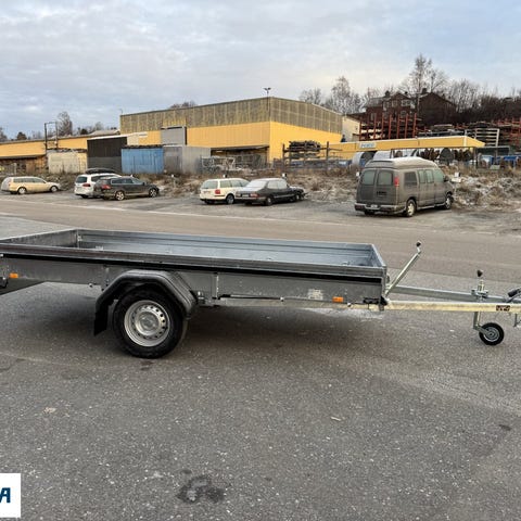 Frontskydd och stenskottsfilm, Vinterhjul på aluminiumfälg, En extrautrustad serie släpvagnar för dig som kör snöskoter. Kåpans utformning är designad med en smal, takyta för att undvika ansamling av snö. Släpvagnarna är utrustade med LED-belysning, skruvtipp med sexkantsfäste, Vagnen på bilden kan vara extrautrustad.