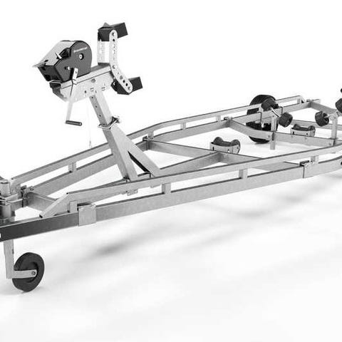 Båtupptagningsvagn för mindre båtar upp till 20 fot, justerbara kölrullar och sidorullar av X-line-kvalitet för enkel anpassning till din båt. Varmgalvaniserat chassi för lång hållbarhet. Vinsch och vinschtorn som är enkelt att justera, vinschtornet är även utrustat med en extra säkerhetsvajer för användning vid transport. Båttrailern på bilden kan vara extrautrustad.