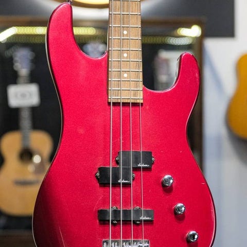 Mycket bra skick, 7/10, Tillverkad i Japan, mer info: Jackson-mickar, Jackson JT-580LP Licensed Floyd Rose-stall, Fabrik: Chushin Gakki (Japan), kropp i poppel med flammig lönnfaner, lönnhals med greppbräda i rosenträ.