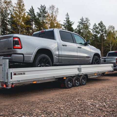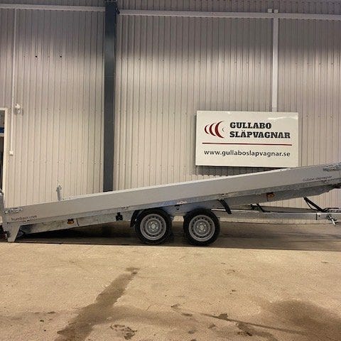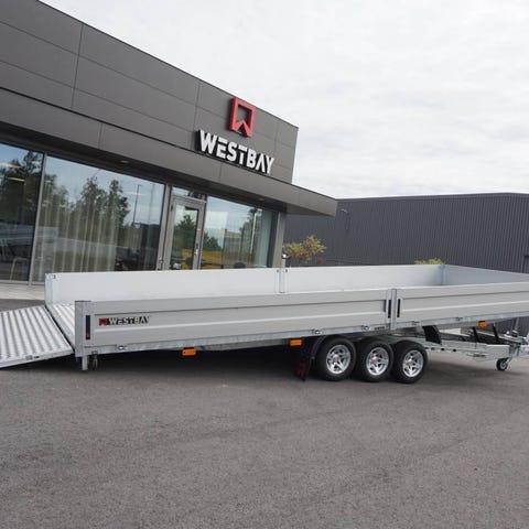 Plattformssläp med aluminium-botten med AL-KO axlar, svetsat och varmgalvat chassi, 250cm långa ramper förvaras i lådor under vagnen