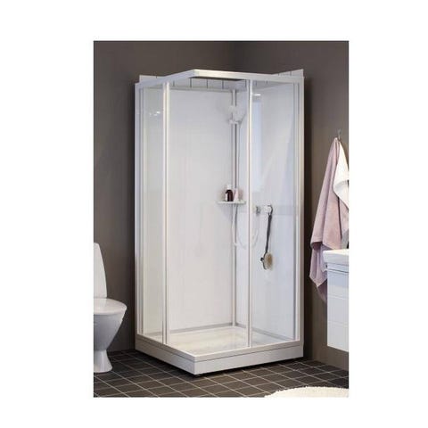 Alterna Basic Duschkabin 80 cm med Dörr - Vit/Frostad, 800x800x2050 mm - nu tillgänglig till outletpris från VVSOutlet.