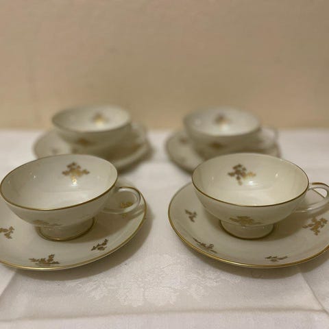 Antika tunna kaffekoppar jugendstil. 13 kaffefat diameter ca 13 cm, 9 koppar höjd 5,5 cm, diameter 8 cm varav 3 med nagg (se bild). 150:-. Skickas ej, kan hämtas i Helsingborg.