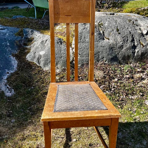 Trästol, sprayad i guldfärg och tygdyna.