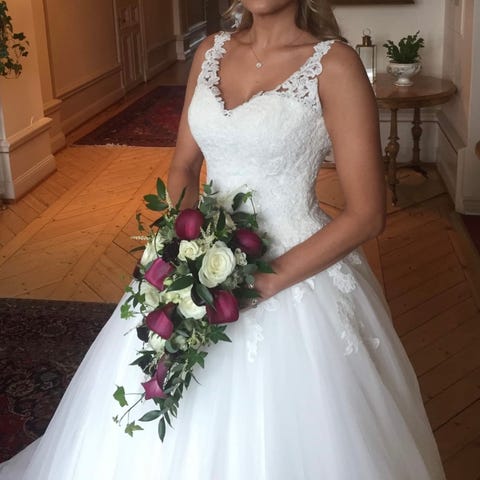 Nu säljer jag min fantastiska brudklänning, inköpt från Milagro och specialsydd efter mina mått.