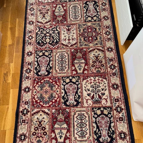 Hittar tyvärr inte ursprungsmärket som fanns på undersidan, men mattan är från Pakistan.