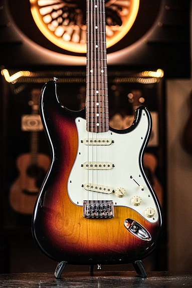 Tillverkad i USA, levereras med brunt fyrkantigt hardcase med rundade hörn – samma typ som såldes nya i Sverige av Hagström. Detta är sista året med mahognyhals och ABR-1-stall monterat direkt i locket. Alla delar är original och lödningar orörda. Jackplattan har en spricka vid en av skruvarna. Guldpläterad hårdvara (delvis sliten), "waffle back"-stämskruvar och graverat personnummer på halsklacken från tidigare ägare.