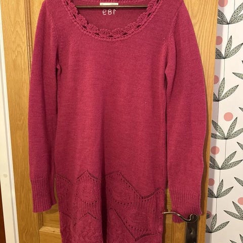 Typisk tunika från Odd Molly. Storlek 1. Bröstvidd 45 cm. Längd från nacke 73 cm. Ärmlängd 47 cm från axel. I bomull, Kan hämtas på Fridhemsgatan vid Fridhemsplan.