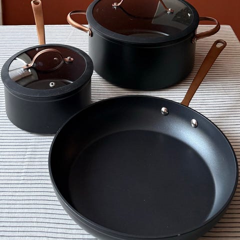 Mycket bra kvalitet. Använda, med normala bruksspår, men fungerar utmärkt. Tål både diskmaskin och induktion. Säljes endast som set.
