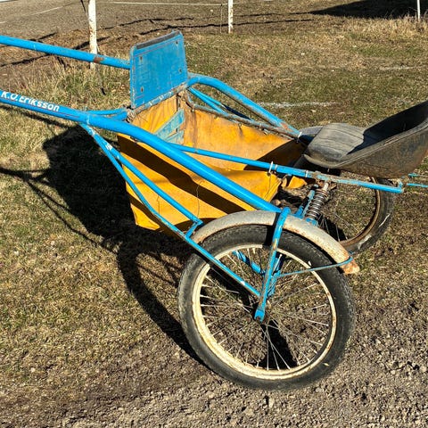 Äldre sulky /rockard med äldre traktorsits i gjutjärn