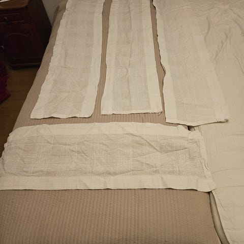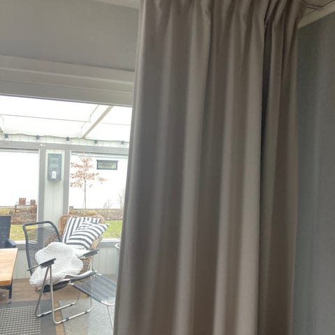 En vit randig - beige mörklläggn gardin bredd 74 cm - för exvis altan fönster.