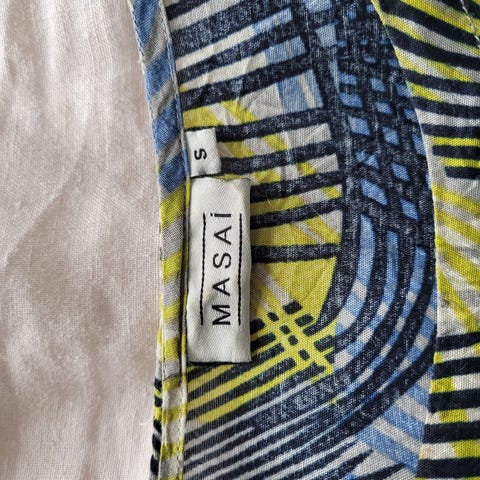 Kort bohemisk klänning i blått & vitt med unikt mönster