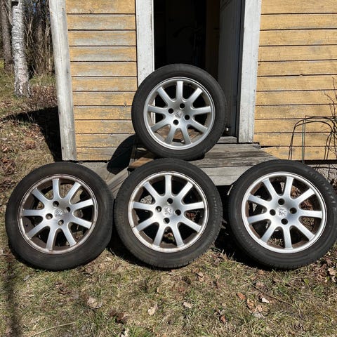 Volvo Original fälgar med sommardäck, däcken är bara att kasta. Har suttit på Volvo V70 ll 2,0F Flexifuel Kinetic 2008 års modell