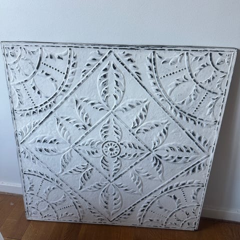 Väggdekoration med motiv av USA:s flagga och texten 'New York'. Tillverkad av trä eller liknande material, storlek anpassad för väggupphängning. Färgtema i rött, vitt och blått. Passar för inredning i hem eller kontor.