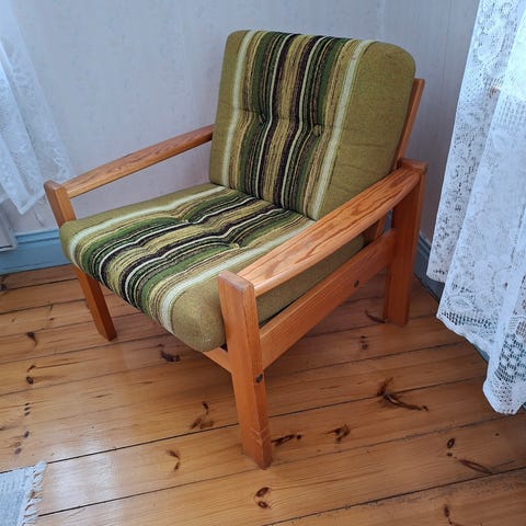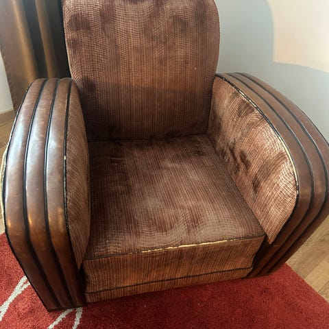 Omklädd dvs inte original klädsel och någon har även bytt den undre klädseln som inte blivit så vackert fäst (se bild)