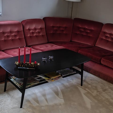 Fin soffa som är använd. Till rätt färger i hemmet kan den passa utmärkt. Den som köper behöver bärhjälp. Står på andra våningen i huset. Ungefärliga mått: B 1,35 H 1,15.