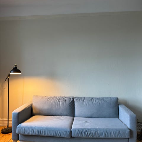 Soffan hämtas i Malmö, kan hjälpa till med att flytta ner soffan från lägenheten.