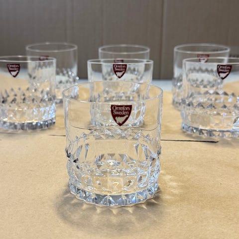 Åtta st glas Sofiero Double Old Fashioned från Orrefors formgavs 1960 av Gunnar Cyrén. Seriens eleganta slipmönster skapar en vacker ljusbrytande effekt i kristallglaset. Glaset passar bra för servering av whiskey och cocktails. Glasen är i mycket fint begagnat skick. Zooma gärna in på bilderna för att skapa er en egen uppfattning.