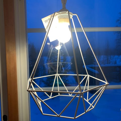 En fin taklampa med pärlfrans.