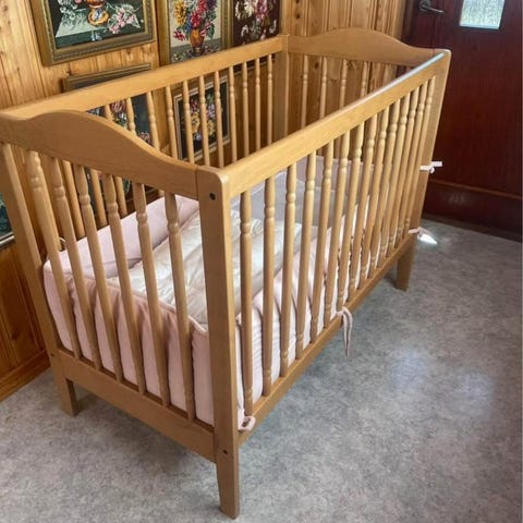 Spjälsäng i fint skick 120x60, går att sätta i tre olika nivåer