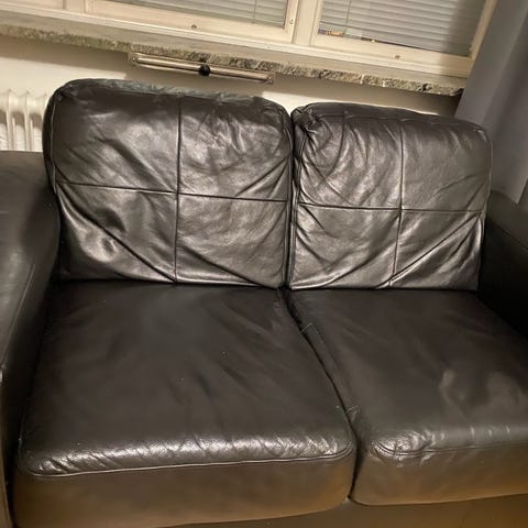 Säljer en snygg svart 2- sits skinnsoffa i mycket fint skick. Endast avhämtning, bär och lasthjälp finns