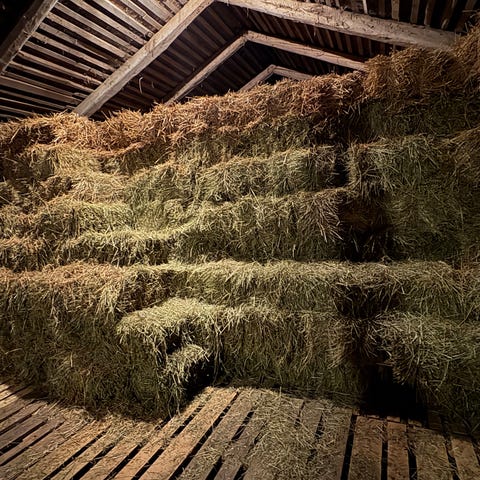 Småbalar hö, skördat i juli'25 vid fint väder. Ca. 10 kg./st.