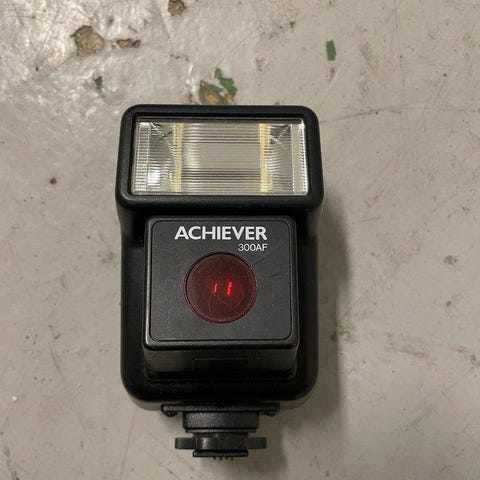 Säljer en fotoblixt av märket Achiever, modell 360LCD. Denna blixt är en Dedicated Thyristor-blixt. Gjord för Nikon kameror.