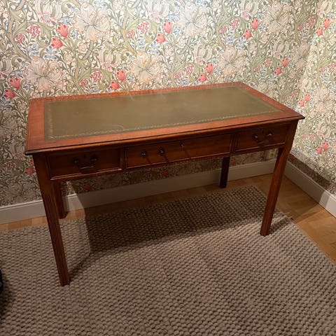 dataskrivbord med fin grönt skinn H79xB103xD61, pris=800 kr