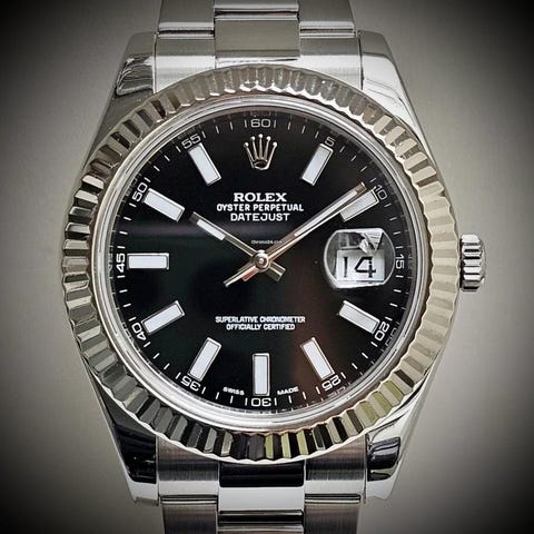 Detta är en klassisk Datejust i 41 mm – en av Rolex mest ikoniska modeller. Passar lika bra till vardags som till kostym, och håller värdet mycket väl.