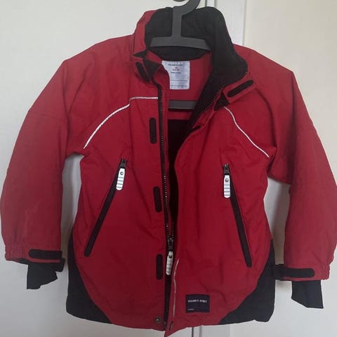 PO.P pop barnjacka i röd färg, storlek 122, unisex. Jackan har avtagbar huva, flera fickor med dragkedja, reflexdetaljer, fint skick. Finns i Vasastan