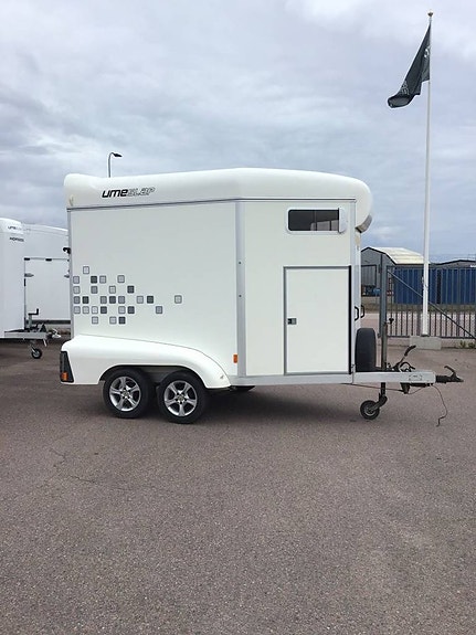 Hästen åker tryggt och säkert bakvänt i ett Ume B-50 som i en hästbil.