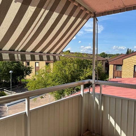 Stor eldriven fönstermarkis, markis