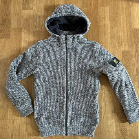 Mysig, grå stickad hoodie med fleecefoder i jättefint skick