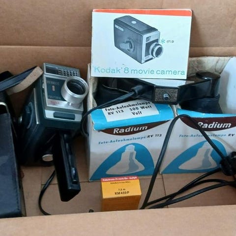 Filmkameran Elmo, köpt på 1980-talet. Lite använd med tillhörande skinnväska.
