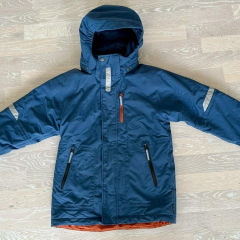 Mörkblå vinterjacka från Polarn & Pyret i storlek 128 (7-8år). Vattentät & vadderad.