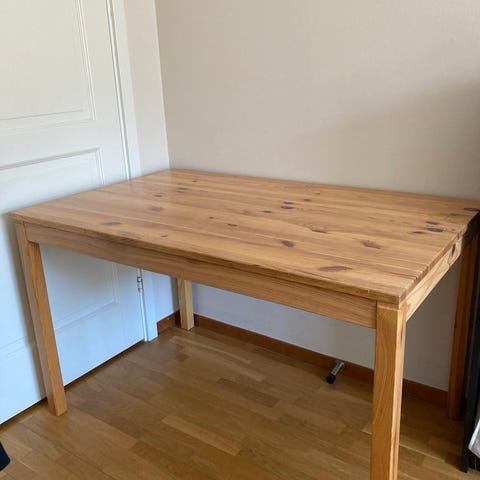 Fint gammalt björkbord med en iläggsskiva och 4 stolar. Säljes pga flytt. Tidigt 1900-tal.
