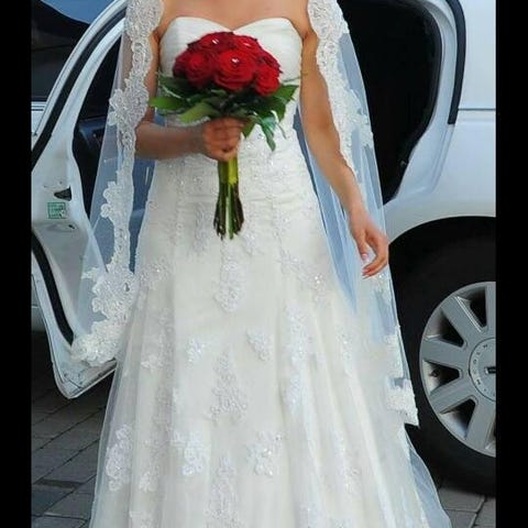 Underbart vacker och exklusiv brudklänning från Spanska La Sposa. Köptes ny från Stockholm Bud & Fest och är använd en gång på böllopet i Oktober