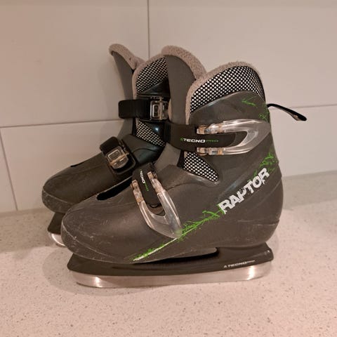Perfekta skridskor för vinterns lek och skridskoskola! Raptor TechnoPro i storlek 31, med slitstarka rostfria skenor. Helt nya