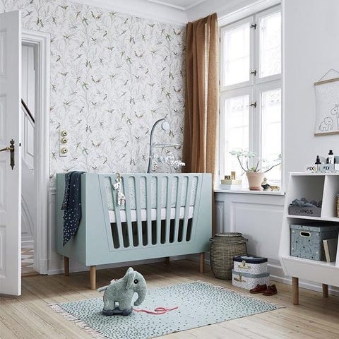 Barnsäng i trä med nallemotiv på ena sidan. Mycket fin, i nyskick och endast använd ett fåtal gånger. Madrass ingår.