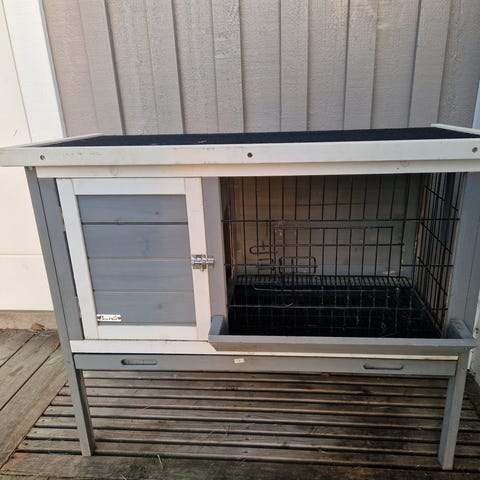 Säljer en grå/vit kaninbur. Vattentätt PVC-tak ger extra motstånd och skydd mot väder och vind. Buren har ett avskilt rum, plus tre dörrar med metall lås. Utdragbar botten för enkel rengöring Den upphöjda designen håller kaninerna säkra, torra och varma 111x70.5x114.8cm 2599:- Fraktkostnad 599:- eller avhämtning.
