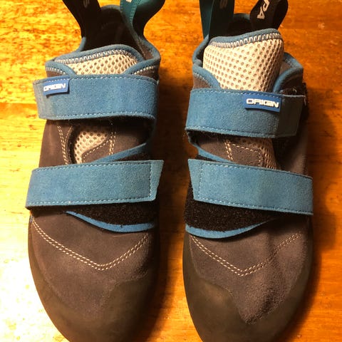 Klätterskor, i en modell som är tilltänkta för nybörjare.