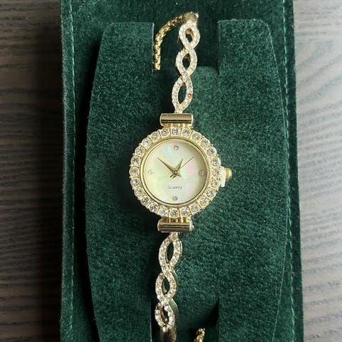 Lyxig och elegant guldig klocka från Guldfynd – perfekt för att lyfta din look till nästa nivå! Klassisk design med tidlös stil som passar både vardag och fest.