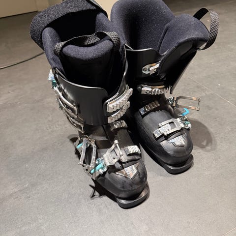 Slalompjäxor till dam i storlek 25.5 (39). Dom är synligt använda och har synliga repor men inget fel på inner tyget, är väldigt bekväma och kan användas flera säsonger.