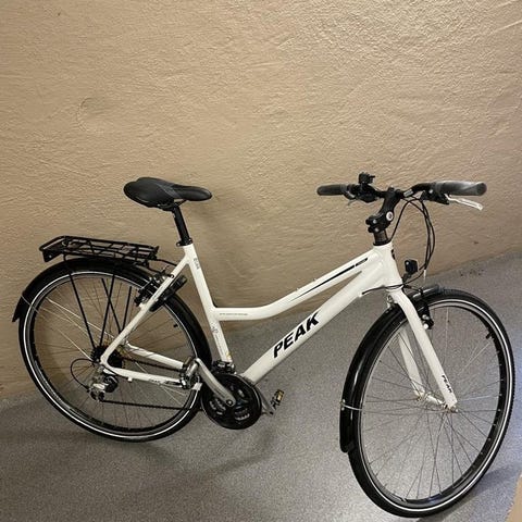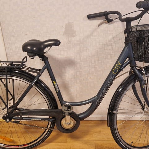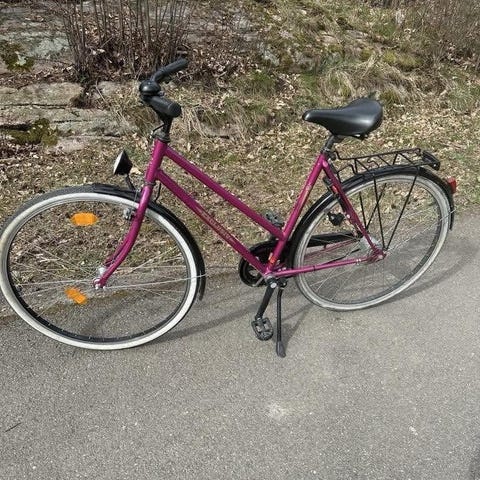 3 Shimano växlar, fot och handbroms, ramlås, flätad korg, pakethållare, kjolskydd, stöd