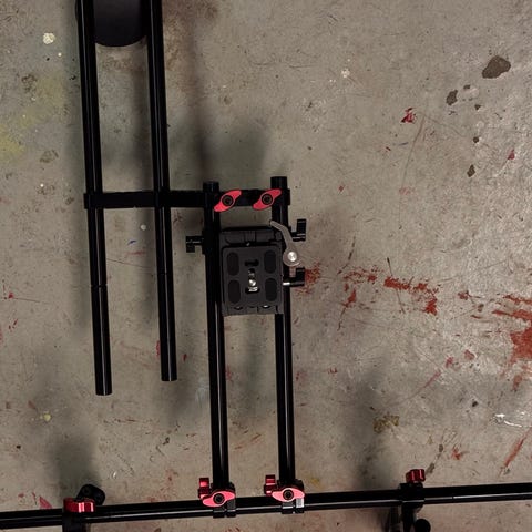 Ljudinspelare för DSLR-kameror, kompatibel med standard stativfästen. Ingår även 3 st trådade myggor och några kablar.